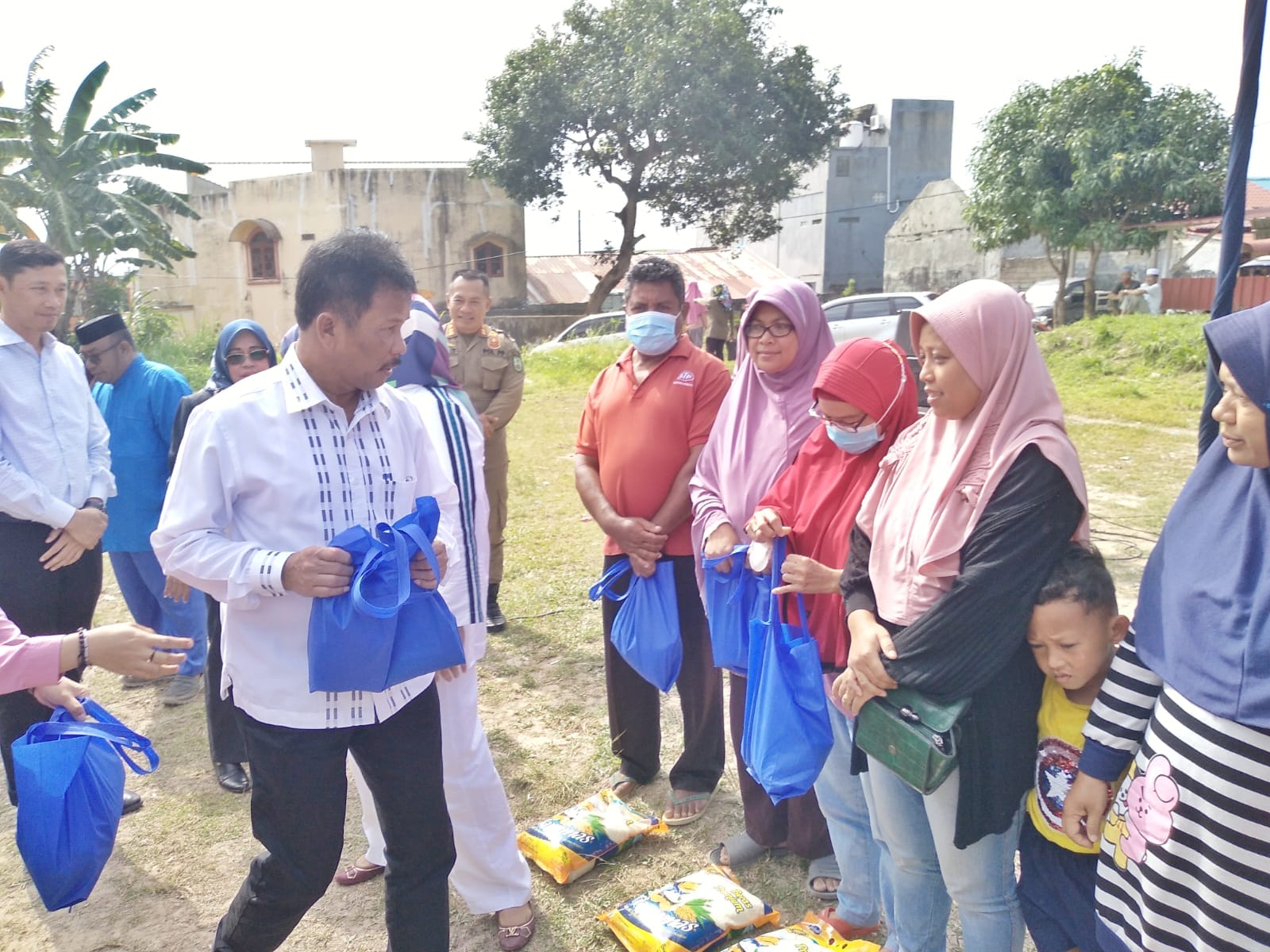 SEKDA Jefridin, membagikan sembako bersubsidi untuk warga Kecamatan Batuampar, di Lapangan GMP Tahap II Sengkuang, Rabu (15/3/2023).