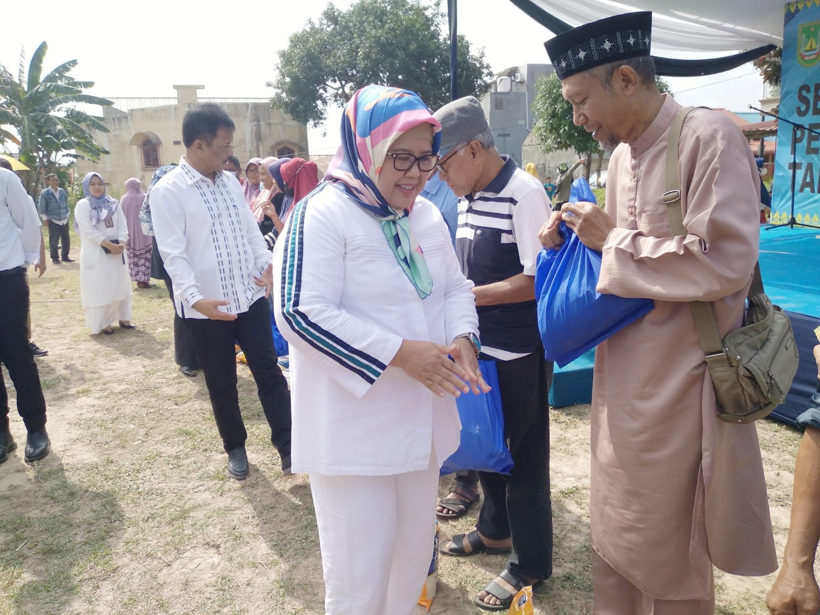BATUAMPAR, KataBatam- Wakil Gubernur Kepulauan Riau Hj Marlin Agustina, menyertai Wali Kota Batam/ Kepala Badan Pengusahaan (BP) Batam H Muhammad Rudi (HMR), membagikan sembako bersubsidi untuk warga Kecamatan Batuampar, Rabu (15/3/2023).