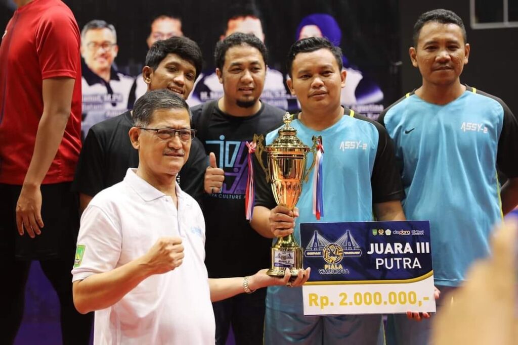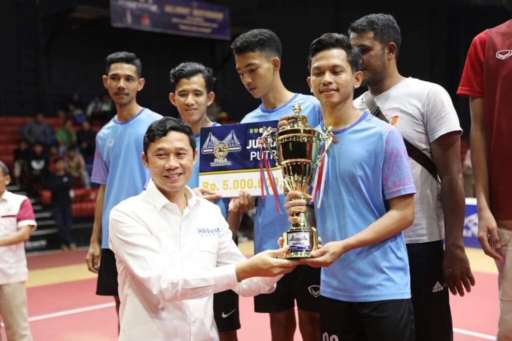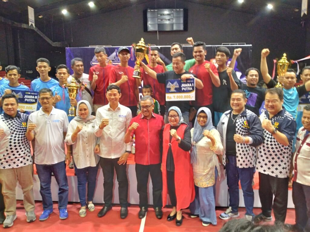 BATAMCENTRE, KataBatam- Sekretaris Daerah Kota Batam H Jefridin, menutup sekaligus menyerahkan langsung piala, kepada juara Turnamen Sepak Takraw Wali Kota Batam Cup 2023, di lapangan HI-TEST Arena Batamcentre, Selasa (30/5/2023) malam.