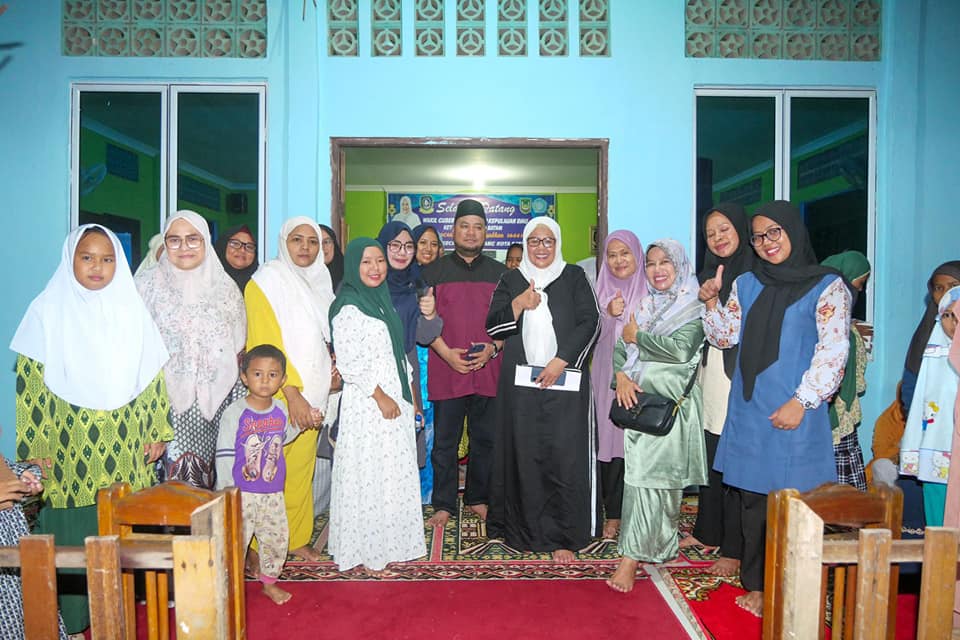 BULANG, KataBatam- Ketua Tim Penggerak Pemberdayaan Kesejahteraan Keluarga (TP-PKK) Kota Batam Hj Marlin Agustina, melakukan Safari Ramadan di Musala At Taqwa, Pulau Nipah, Kecamatan Bulang, Kota Batam, Senin (27/3/2023) malam.