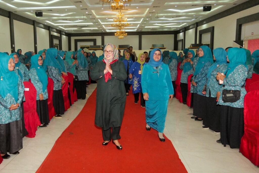 BENGKONG, KataBatam- Wakil Gubernur Kepulauan Riau Hj Marlin Agustina, dan Sekretaris Daerah Kota Batam H Jefridin, menghadiri Penguatan Kelembagaan Organisasi Kelompok Pemberdayaan Kesejahteraan Keluarga (PKK) Rukun Warga (RW) Kota Batam, Kamis (23/11/2023).