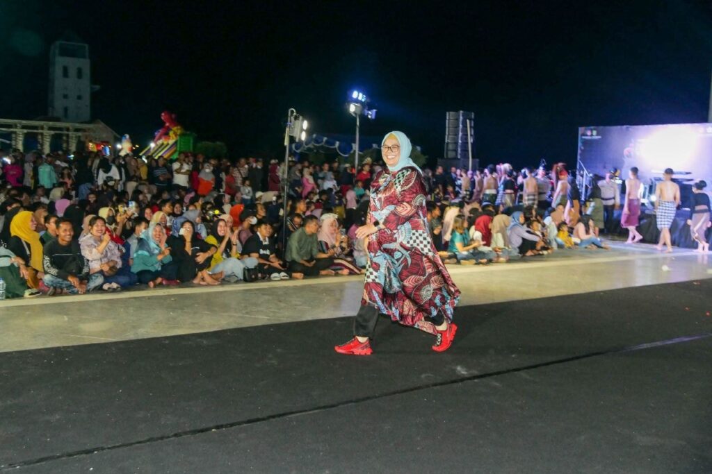 WAGUB Marlin ikut menjadi model di cat walk Roadshow dan Malam Puncak Batam Batik Fashion Week 2022 Karimun, di Panggung Putri Kemuning Coastal Area, Karimun, Sabtu (26/11/2022) malam.