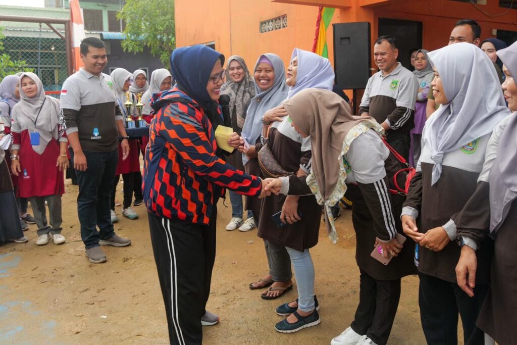 SAGULUNG, KataBatam- Wakil Gubernur Kepulauan Riau Hj Marlin Agustina, menutup Turnamen Bola Voli Antar-Kader Posyandu dan Kader Kelurahan Siaga Se-Kecamatan Sagulung, di Fasum Perum Aviari Gorden, Kelurahan Sungailangkai, Sagulung, Kota Batam, Minggu (5/3/2023) petang.
