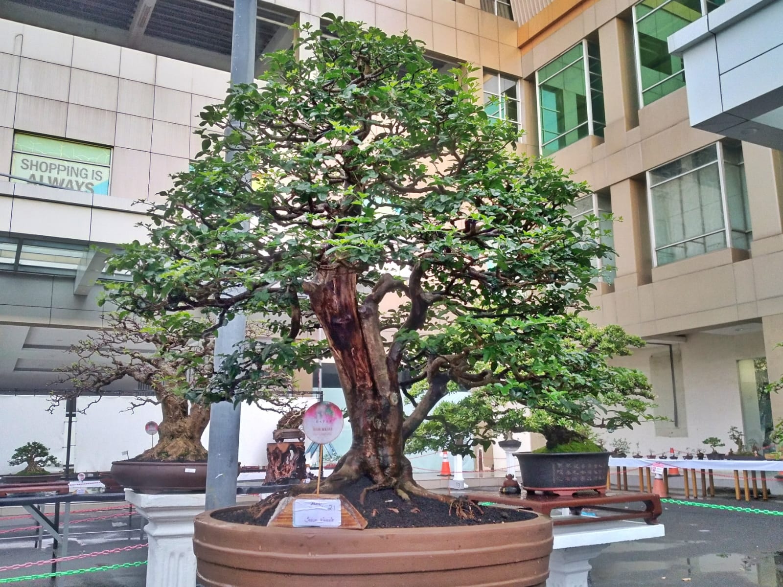 NAGOYAHILL, KataBatam- Sebanyak 210 bonsai dengan berbagai karakteristik dan daya tarik, dipamerkan di parkiran Nagoya Hill Shopping Mall, Lubukbaja, Kota Batam, Selasa (15/11/2022).