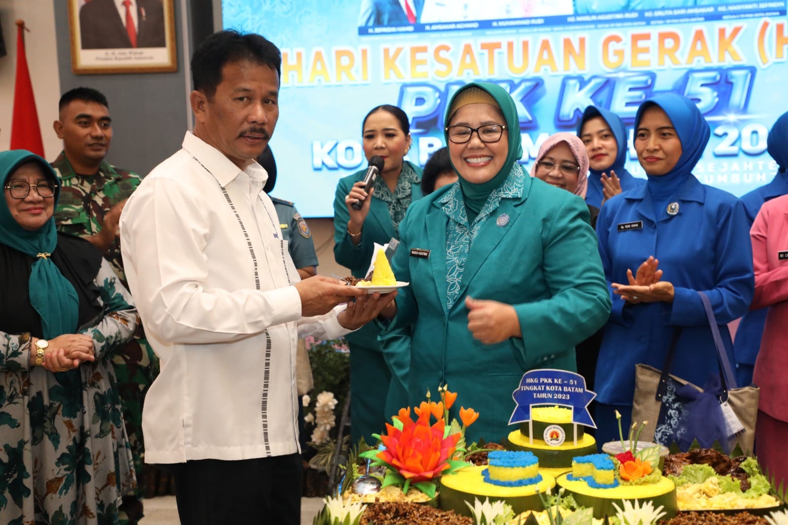 JODOH, KataBatam- Hari Kesatuan Gerak (HKG) Ke-51 Pemberdayaan Kesejahteraan Keluarga (PKK) Kota Batam, Tahun 2023, digelar meriah di Planet Holiday Hotel, Jodoh, Senin (22/5/2023).