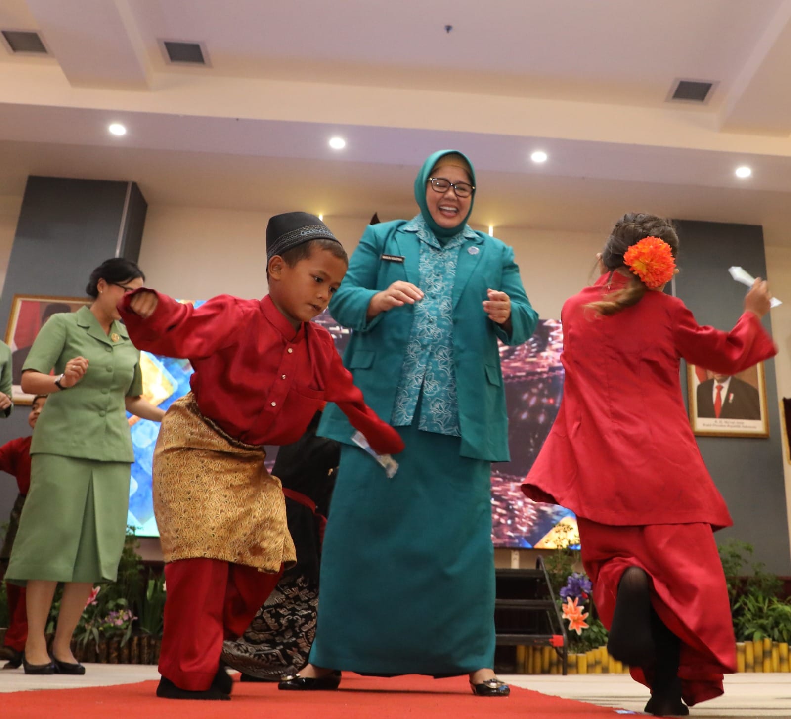 Hadirin pun tampak bertepuk tangan usai momen tersebut. Ini salah satu dari sekian banyak keseruan dalam acara ini. Misalnya saat Marlin berjoget Lambak, bersama penari cilik dari Sanggar Sri Kemuning Kecamatan Belakangpadang, yang diikuti juga ibu-ibu Gabungan Organisasi Wanita (GOW) Kota Batam.