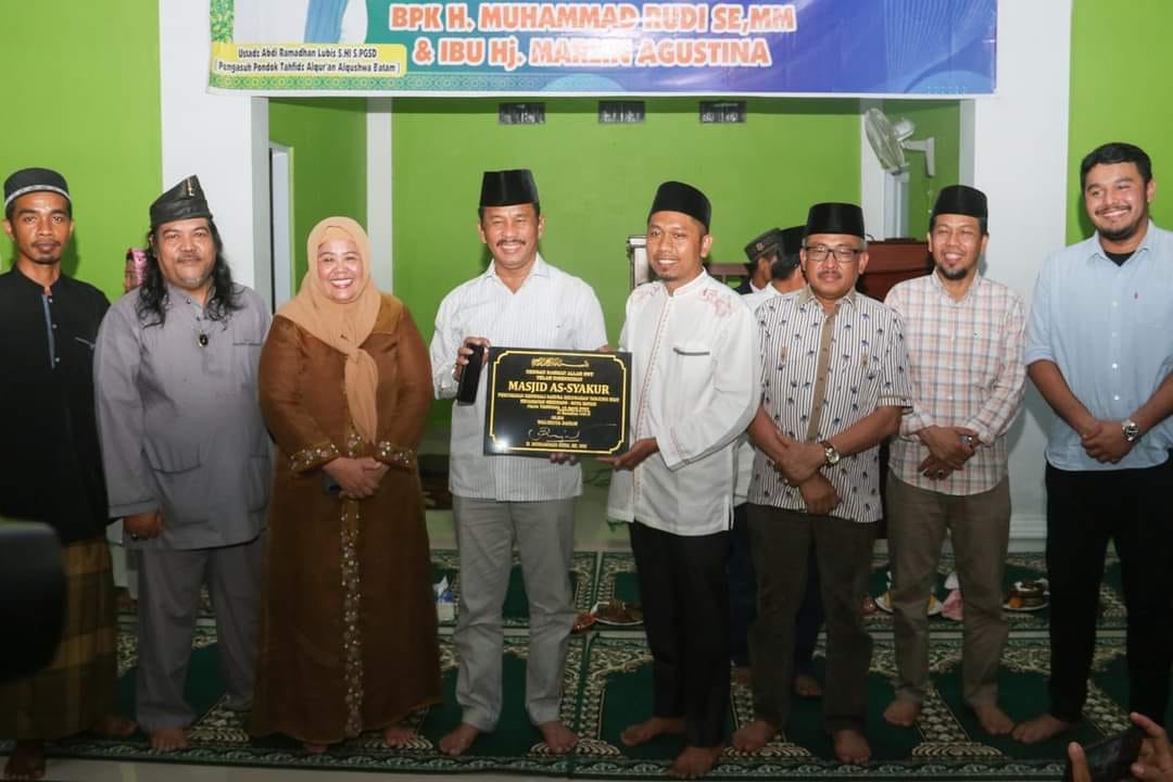 TANJUNGRIAU, KataBatam- Wakil Gubernur Kepulauan Riau Hj Marlin Agustina, mendampingi Wali Kota Batam H Muhammad Rudi (HMR), meresmikan Masjid As Syakur di Perumahan Renggali Sakura, Tanjungriau, Sekupang, Kota Batam.
