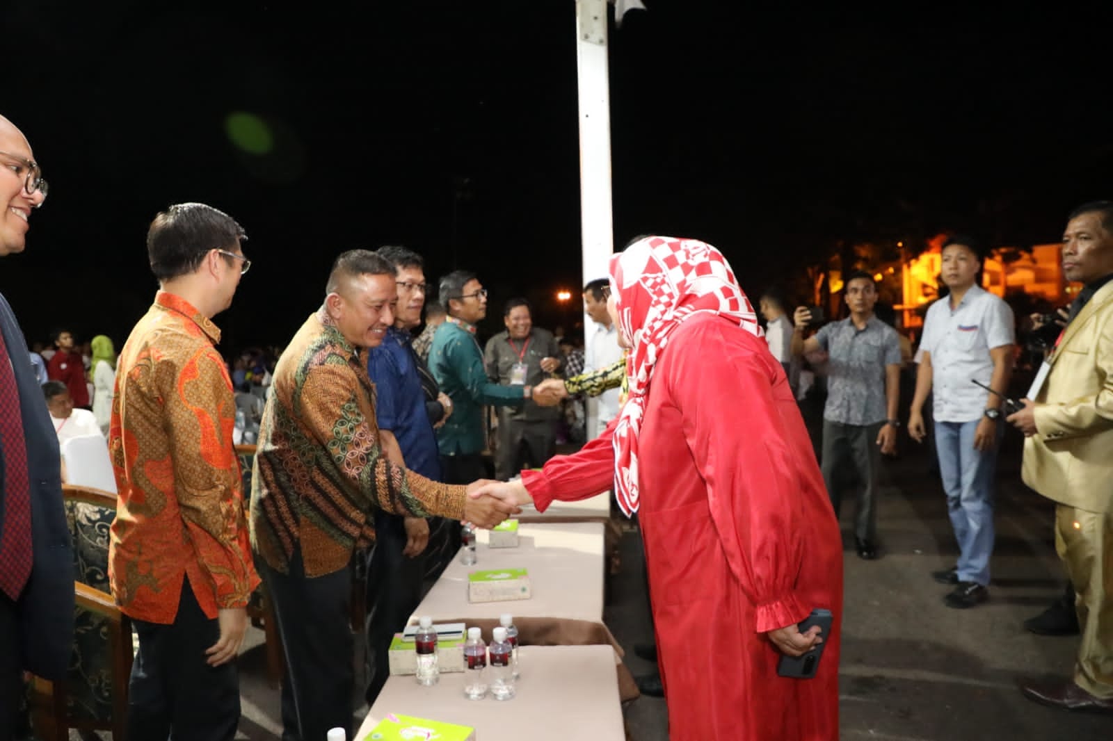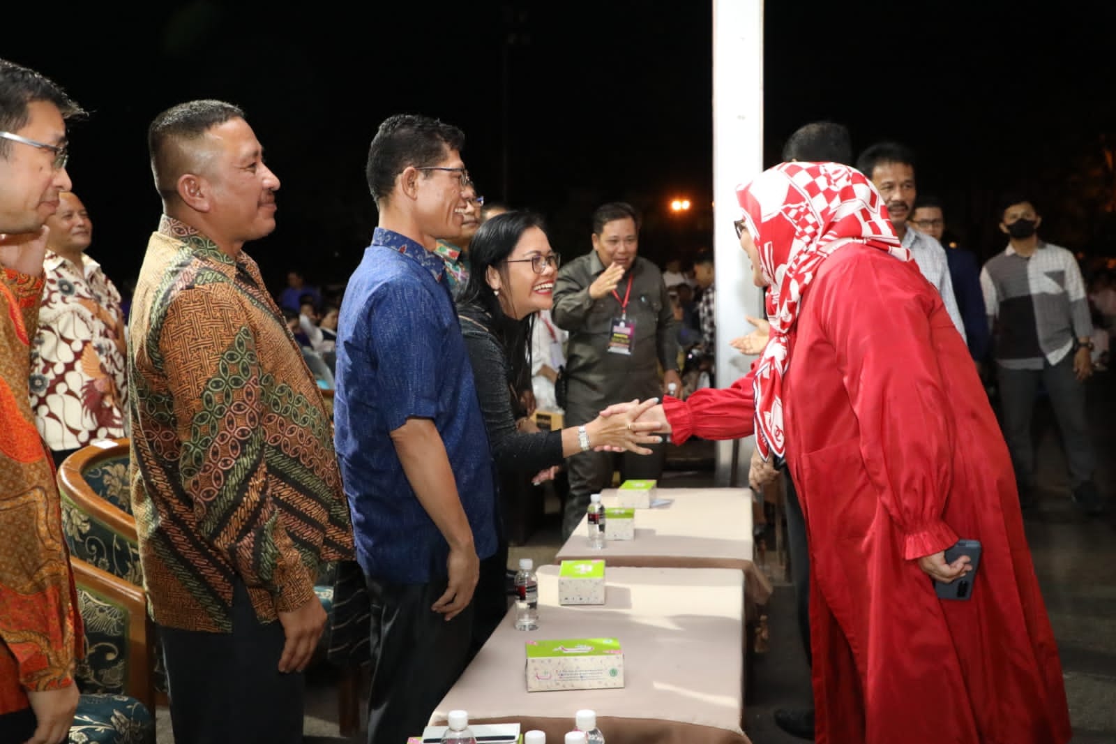 WAGUB Marlin, menyapa masyarakat saat menghadiri Paskah Oikumene se-Kota Batam, di Stadion Temenggung Abul Jamal, Mukakuning, Sabtu (13/5/2023) malam.