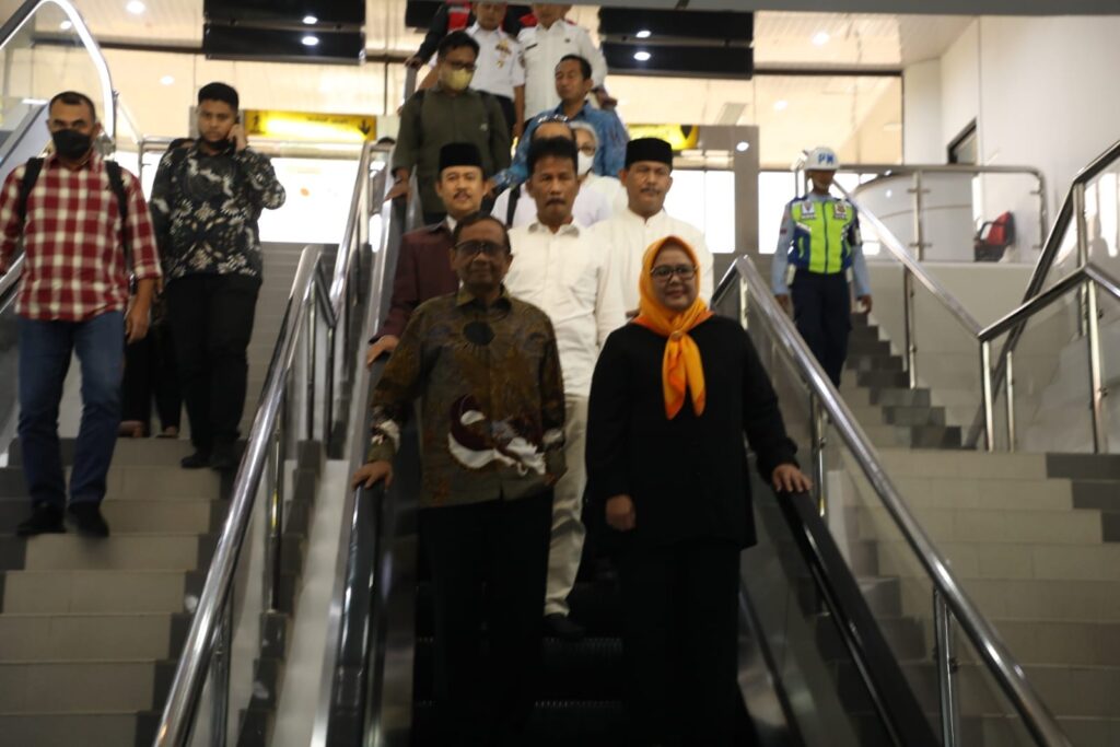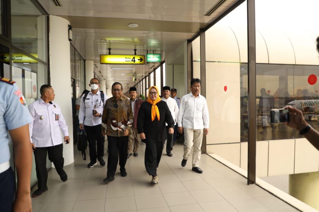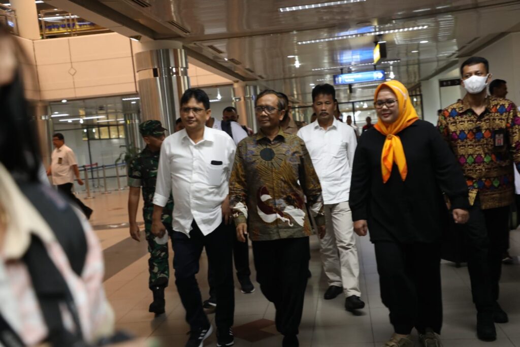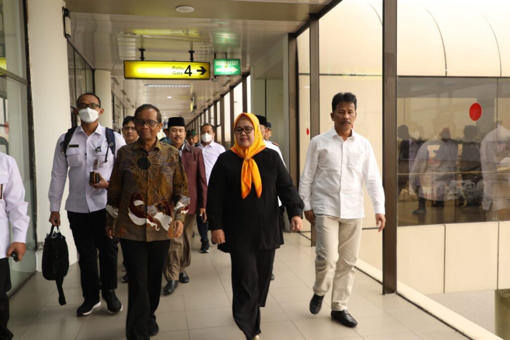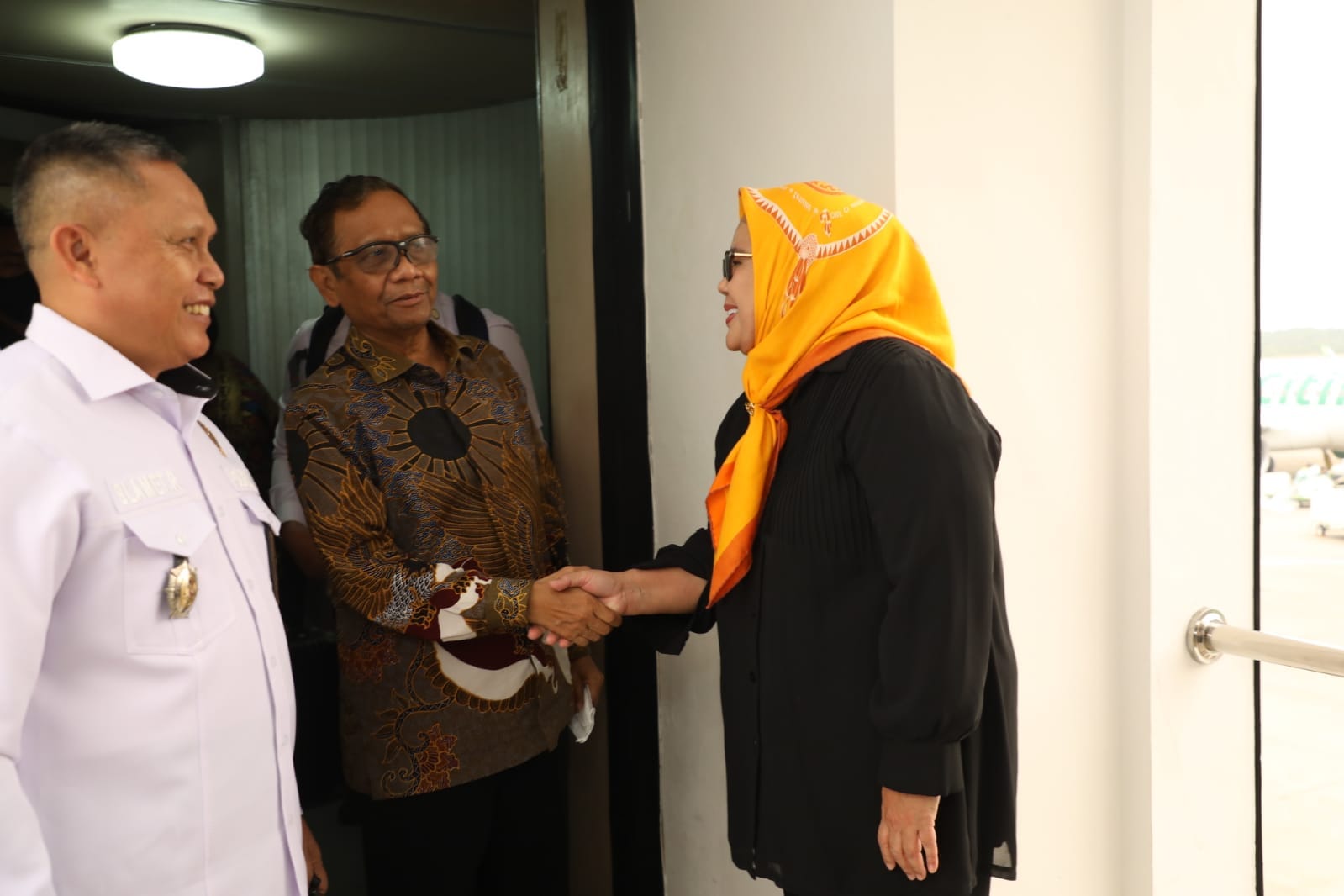 NONGSA, KataBatam- Wakil Gubernur Kepulauan Riau Hj Marlin Agustina, menyambut Menteri Koordinator bidang Politik, Hukum, dan Keamanan (Menkopolhukam) Mahfud MD di Bandar Udara Internasional Hang Nadim, Batam, Rabu (5/4/2023) pukul 17.00.