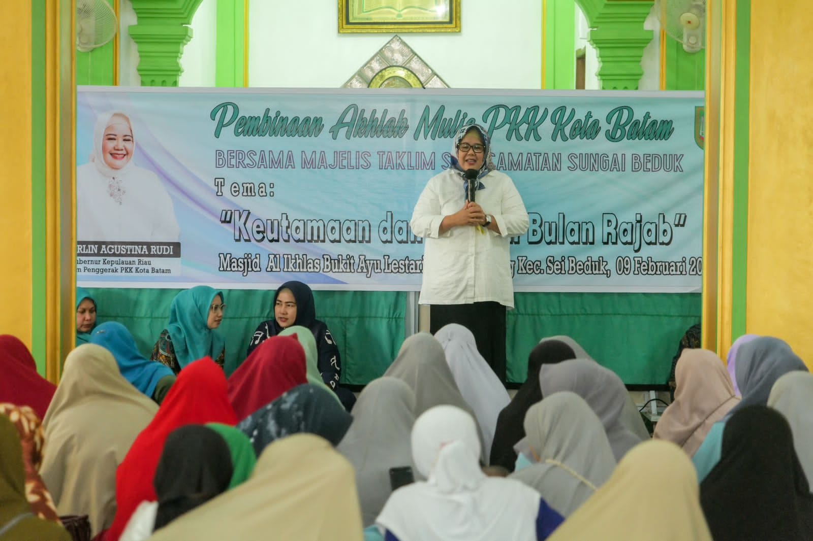 SEIBEDUK, KataBatam- Wakil Gubernur Kepulauan Riau Hj Marlin Agustina, melakukan Road Show Pembinaan Akhlak Mulia Tim Penggerak Pemberdayaan Kesejahteraan Keluarga (TP-PKK) Kota Batam, di Kecamatan Seibeduk, Batam, Kamis (9/2/2023) petang.
