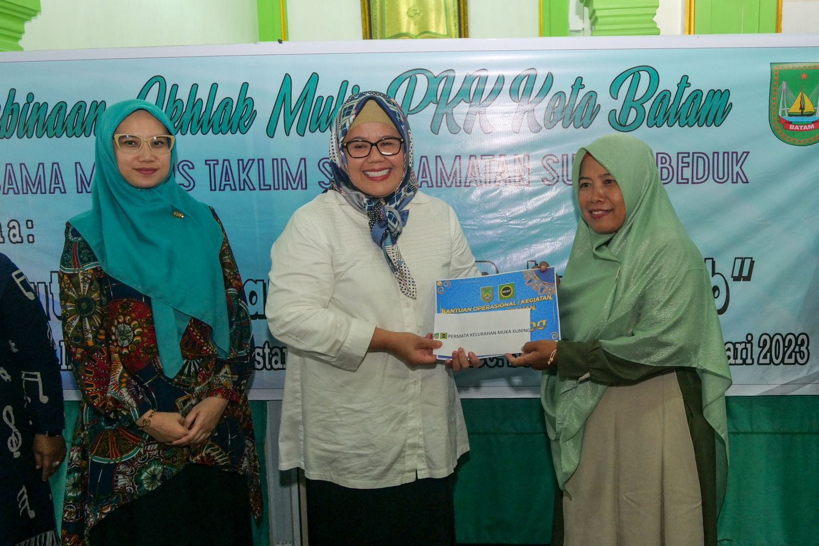 Pada kesempatan itu, Ketua TP PKK Kota Batam ini menyerahkan bantuan sebagaimana dijanjikannya.