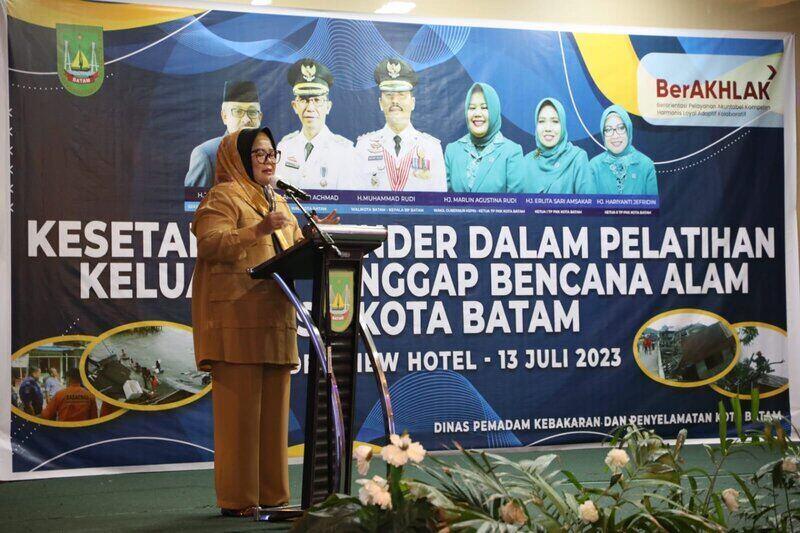BENGKONG, KataBatam – Wakil Gubernur Kepulauan Riau Hj Marlin Agustina, yang juga Ketua Tim Penggerak Pemberdayaan Kesejahteraan Keluarga (TP-PKK) Kota Batam, membuka Pelatihan Keluarga Tanggap Bencana Alam, di Hotel Golden View, Bengkong, Batam, Kamis (13/7/2023) pagi.