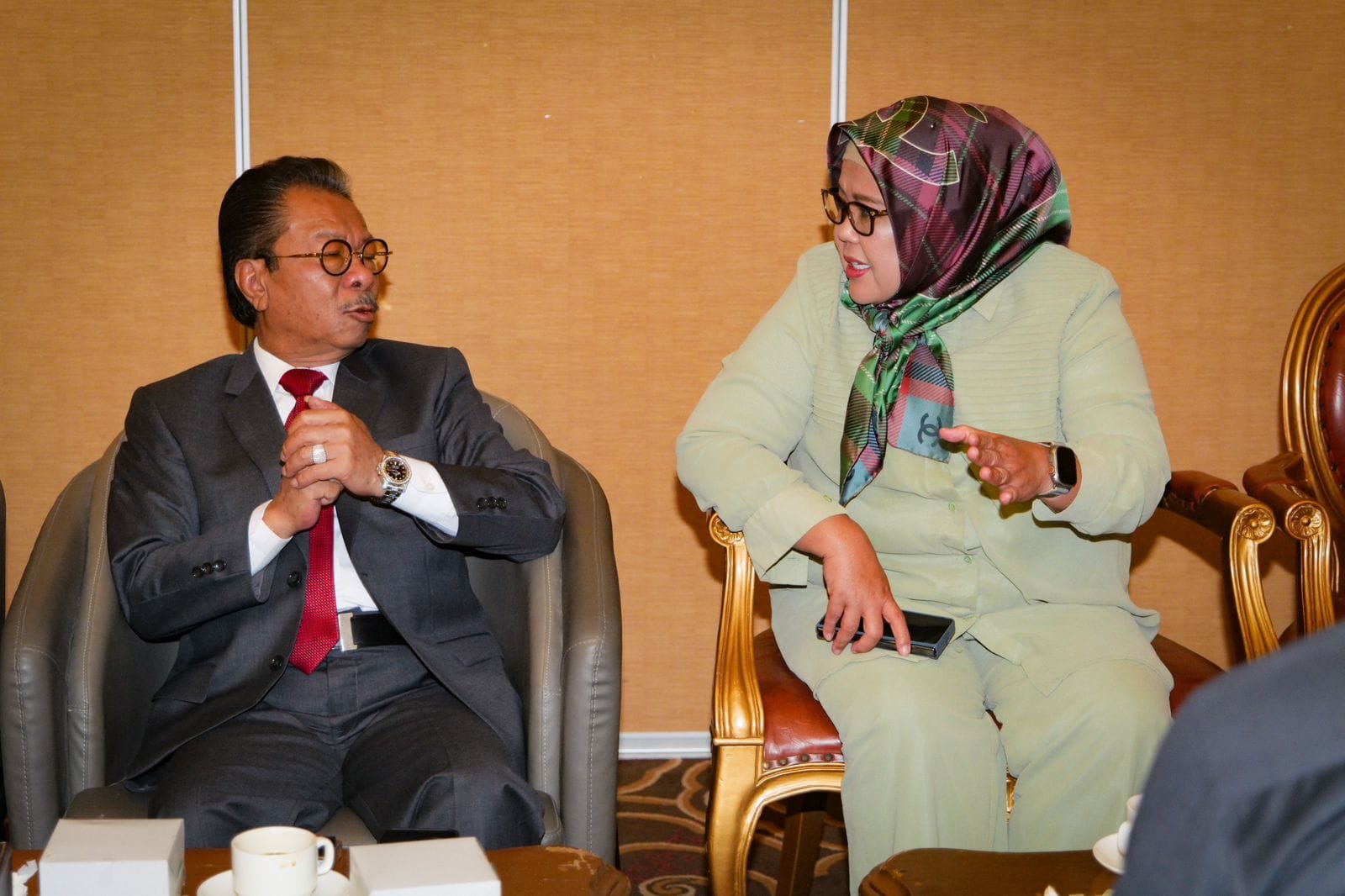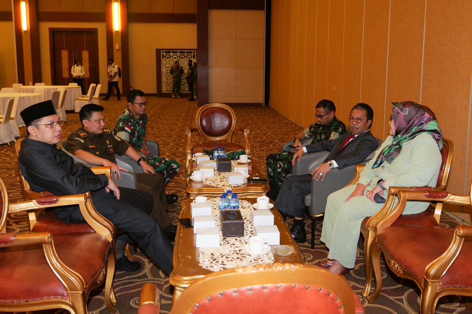 WAGUB Marlin, berbincang dengan Ketua DPRD Kepri Jumaga Nadeak, dan Forkopimda Kepri, sela acara pembacaan LKPj Kepala Daerah Kepri, Tahun 2022, di Aula Wan Seri Beni, Pulau Dompak, Tanjungpinang, Selasa (21/3/2023).