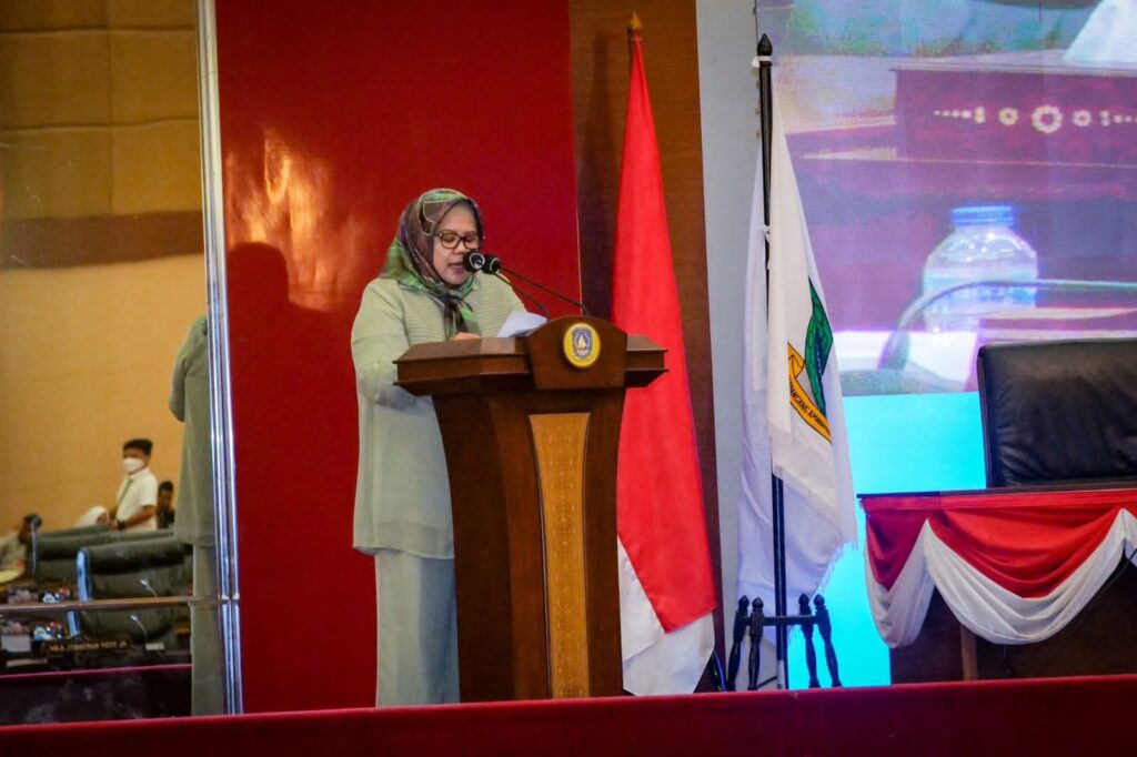 DOMPAK, KataBatam- Wakil Gubernur Kepulauan Riau (Kepri) Hj Marlin Agustina, membacakan Laporan Keterangan Pertaanggunjawaban (LKPj) Kepala Daerah Kepri Tahun 2022, di Aula Wan Seri Beni, Pulau Dompak, Tanjungpinang, Selasa (21/3/2023).