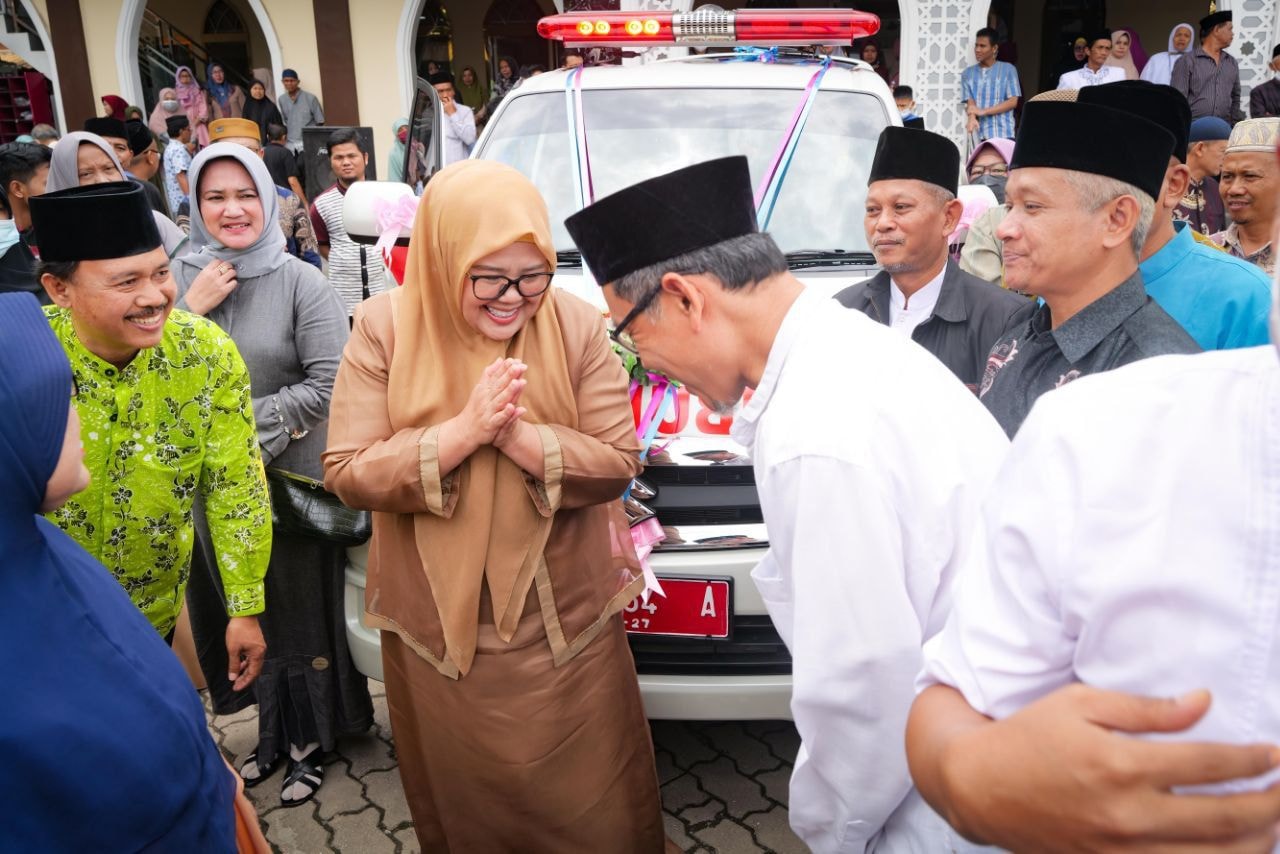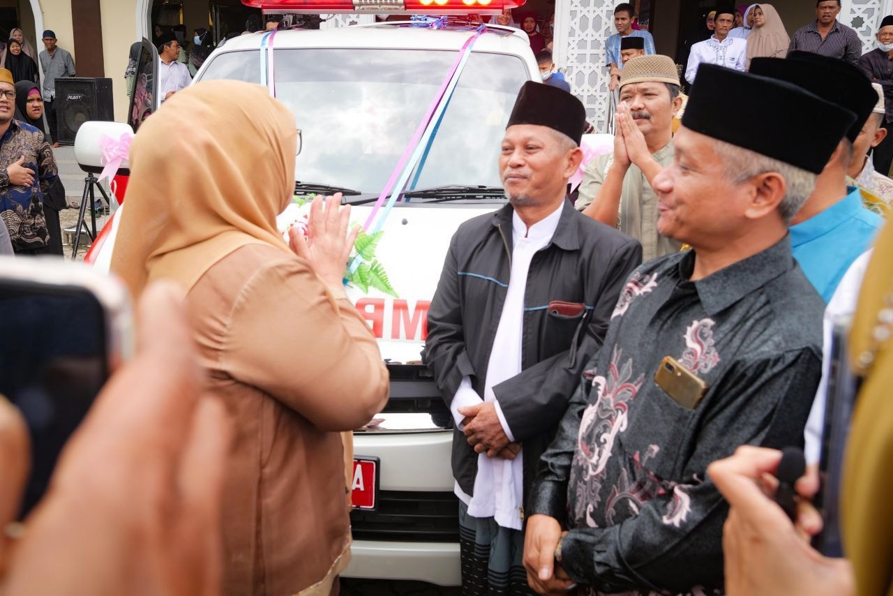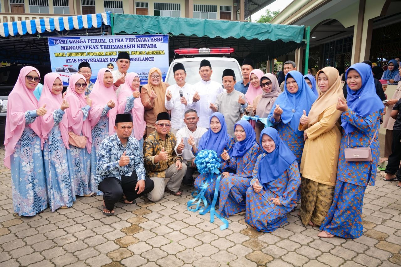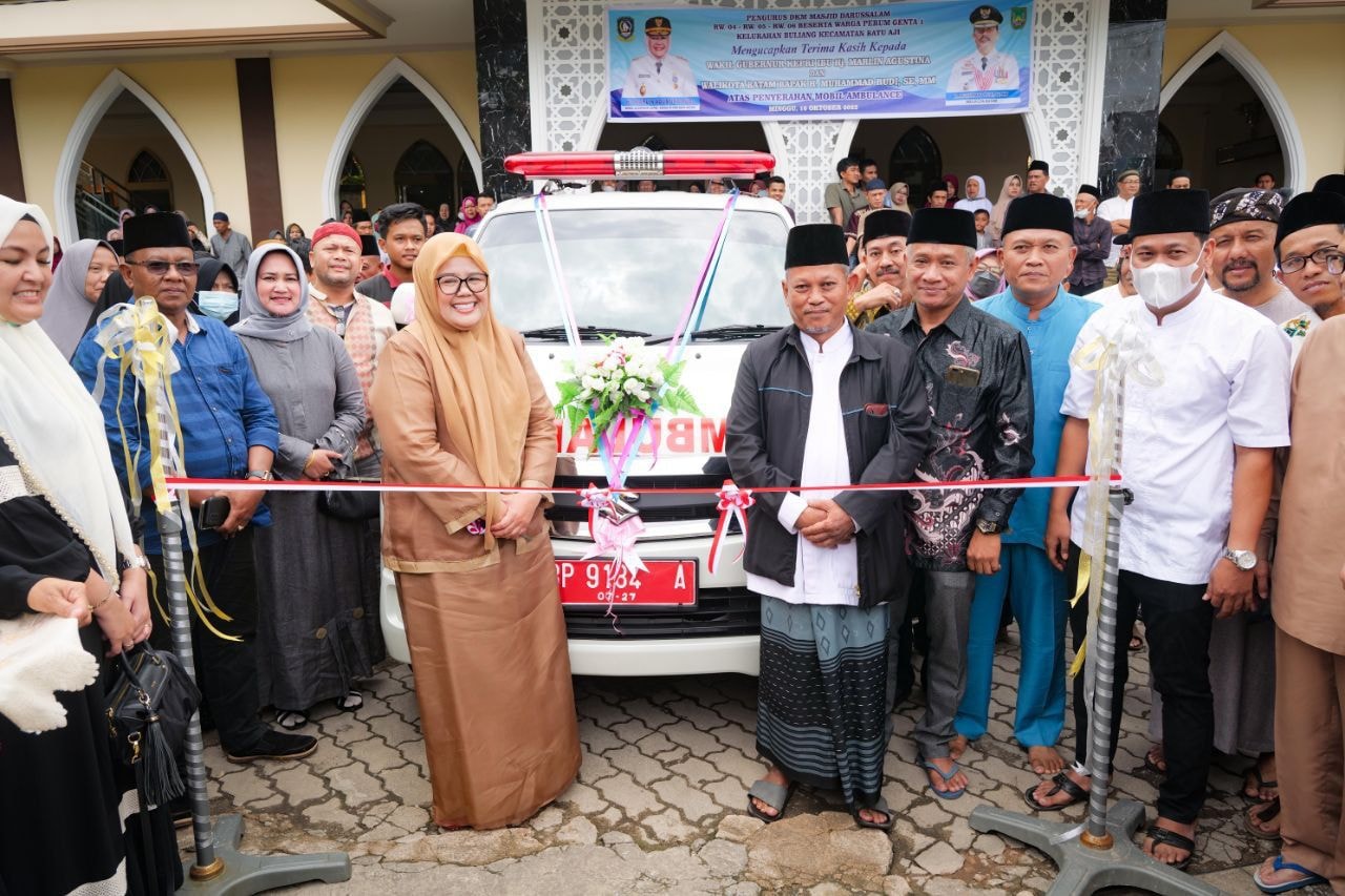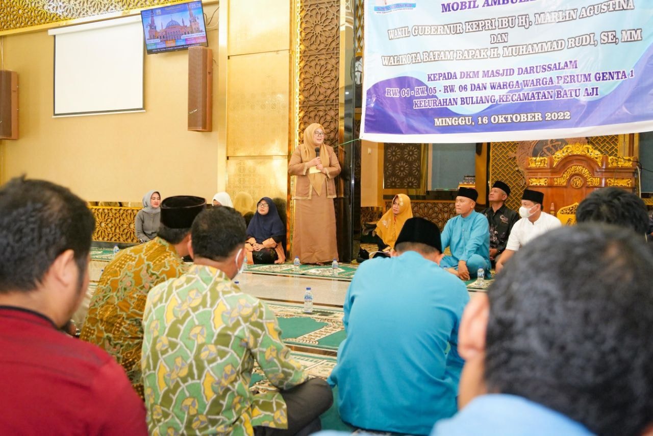 BATUAJI, KataBatam– Wakil Gubernur Kepulauan Riau Hj Marlin Agustina, menghadiri Syukuran dan Penyerahan Mobil Ambulans di Masjid Baitul Falah Perum Citra Pendawa Asri, Batuaji, Kota Batam, Minggu (16/10/2022).