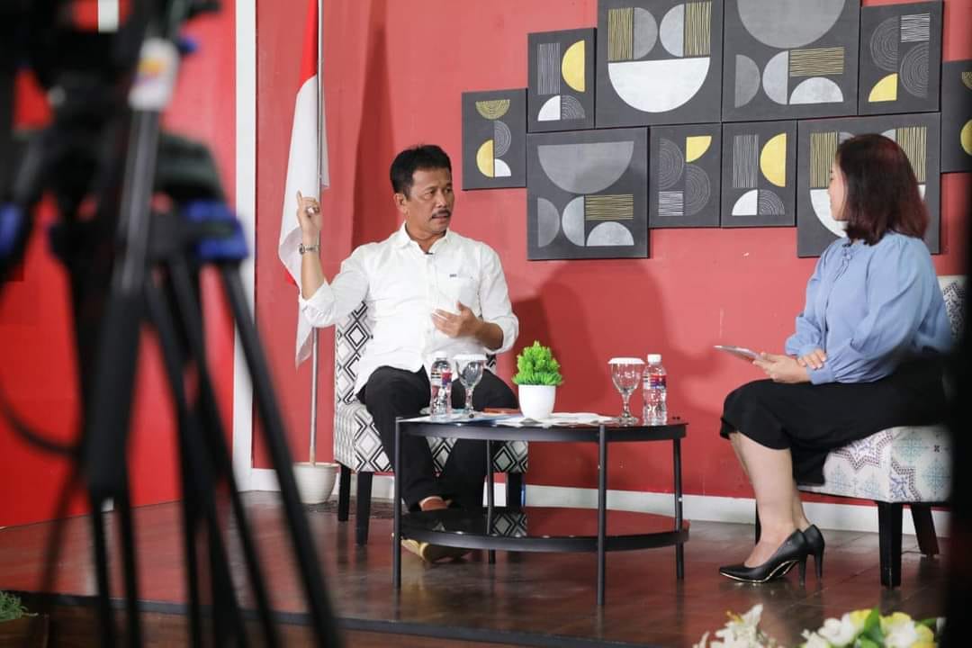BATAMCENTER, KataBatam- Wali Kota Batam H Muhammad Rudi (HMR), menjadi bintang tamu dialog interaktif Batam TV, dengan mengangkat tema tentang pengembangan sektor pariwisata di Kota Batam, di Graha Pena Batam, Batamcenter, Kamis (23/11/2023).